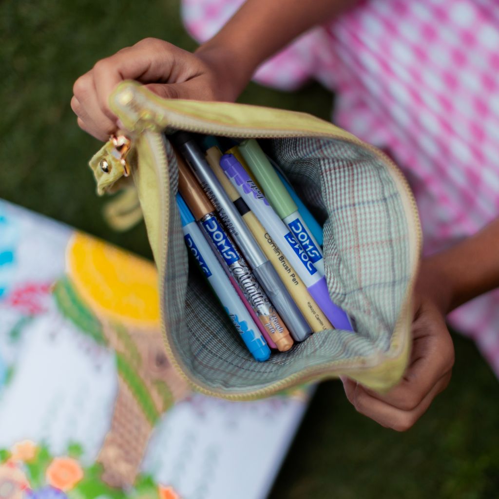Our embroidered pouches are perfect for carrying the essentials! Each bag is hand-embroidered with by refugee and low-income women artisans with a traditional Palestinian tahriri motif.