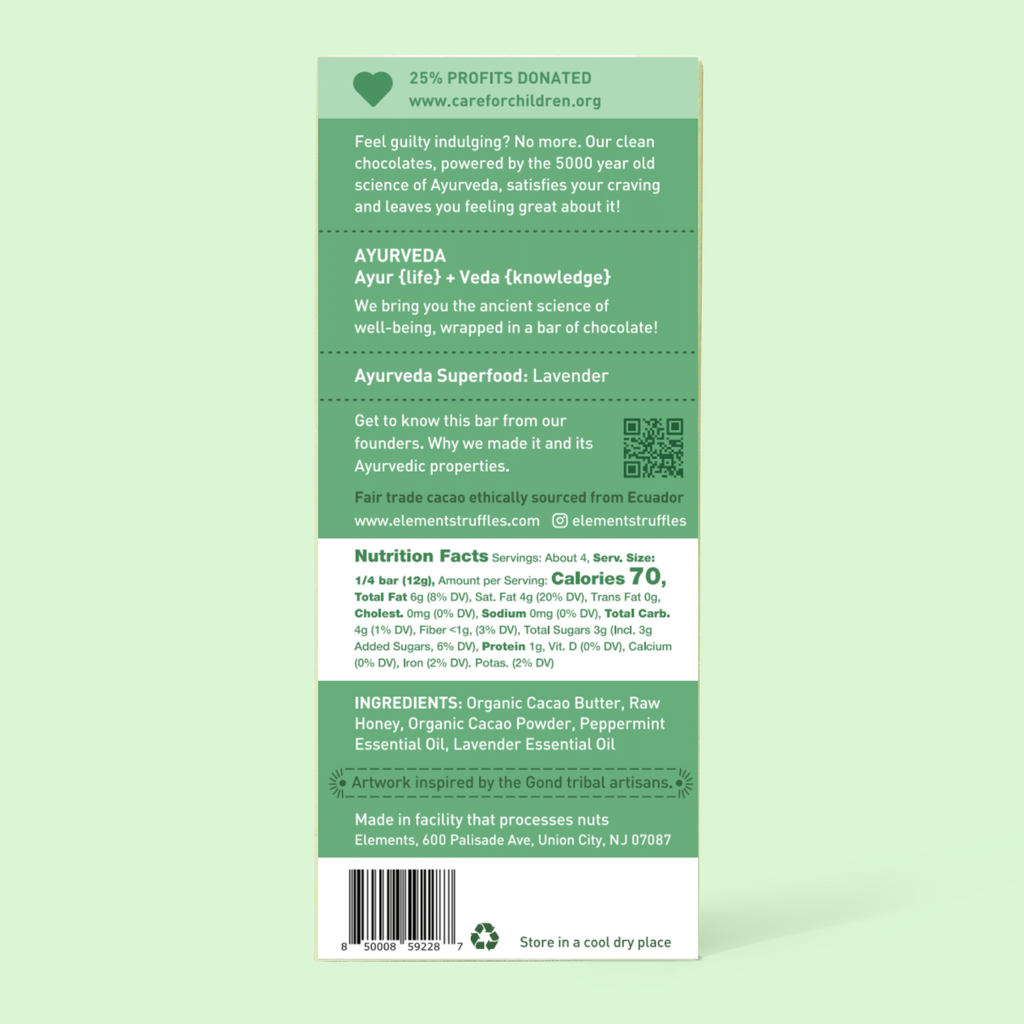 Ingredients: Organic Cacao, Organic Coconut Sugar, Organic Cacao Butter, Blend of Pure Essential Oils, Functional Superfoods