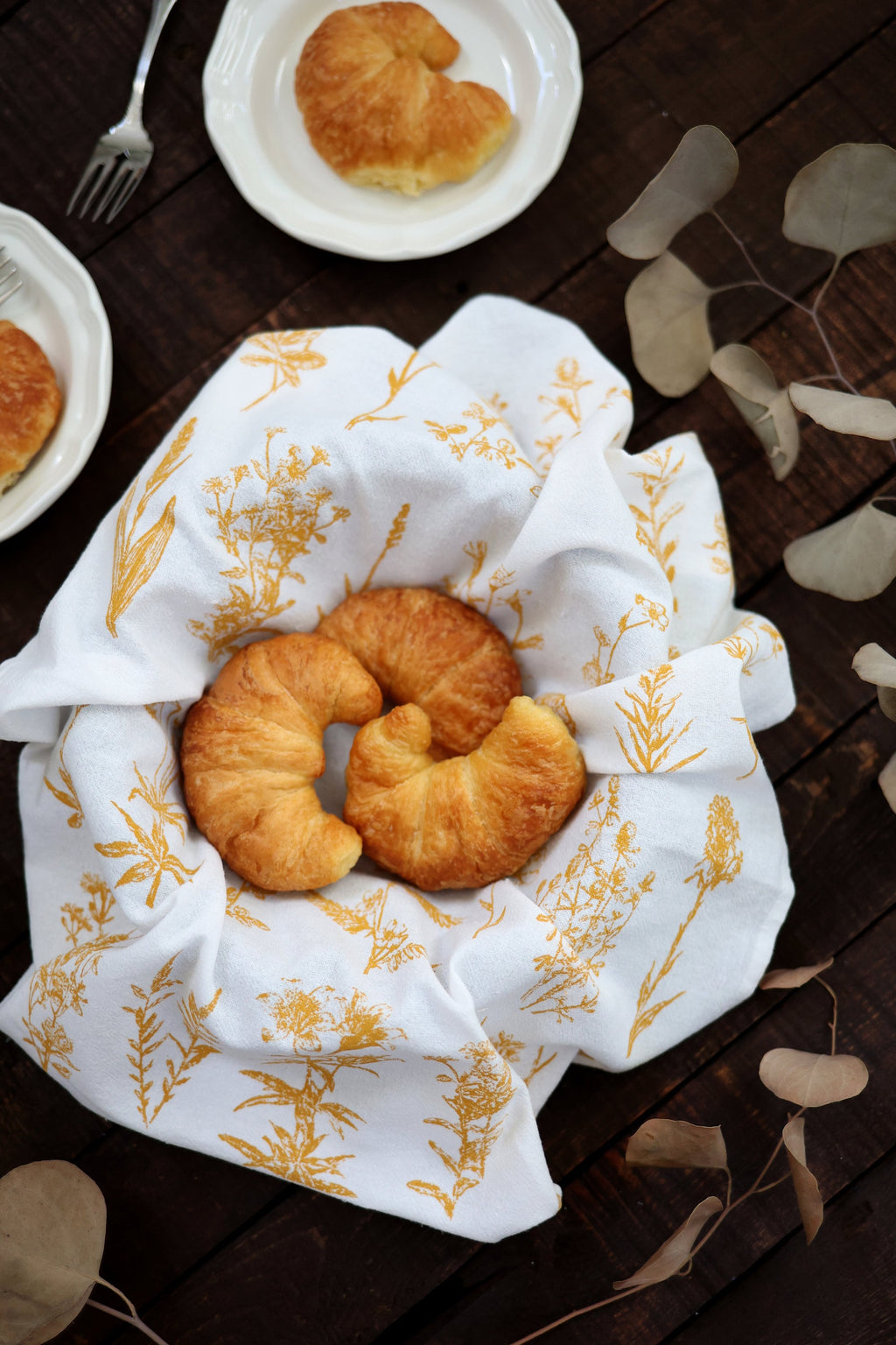 These are the perfect size to fold and display in a table setting or hanging over your oven. They are medium weight and lint-free so it works as a delicate napkin or as an absorbent clean-up cloth. (YES, they are *absorbent!*)